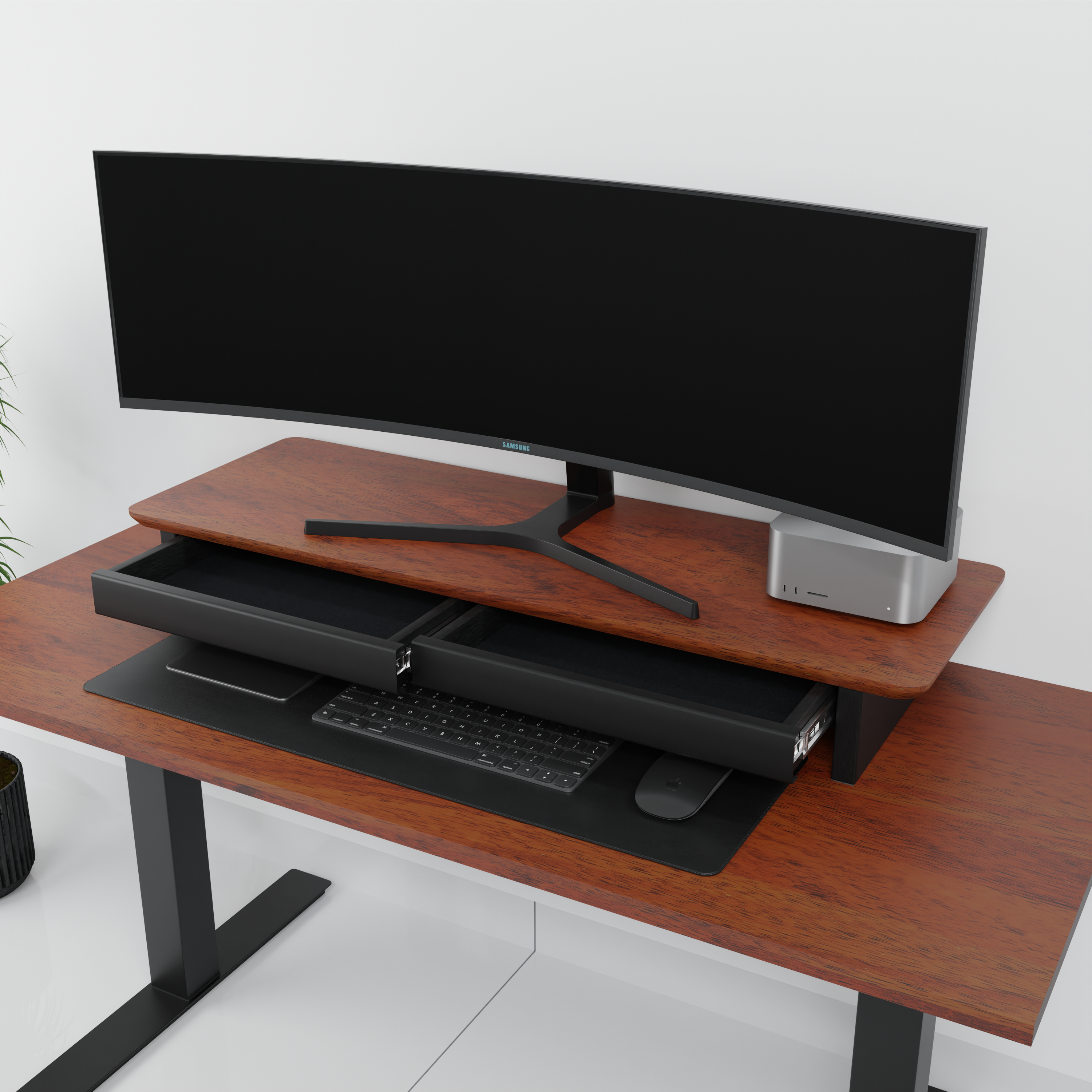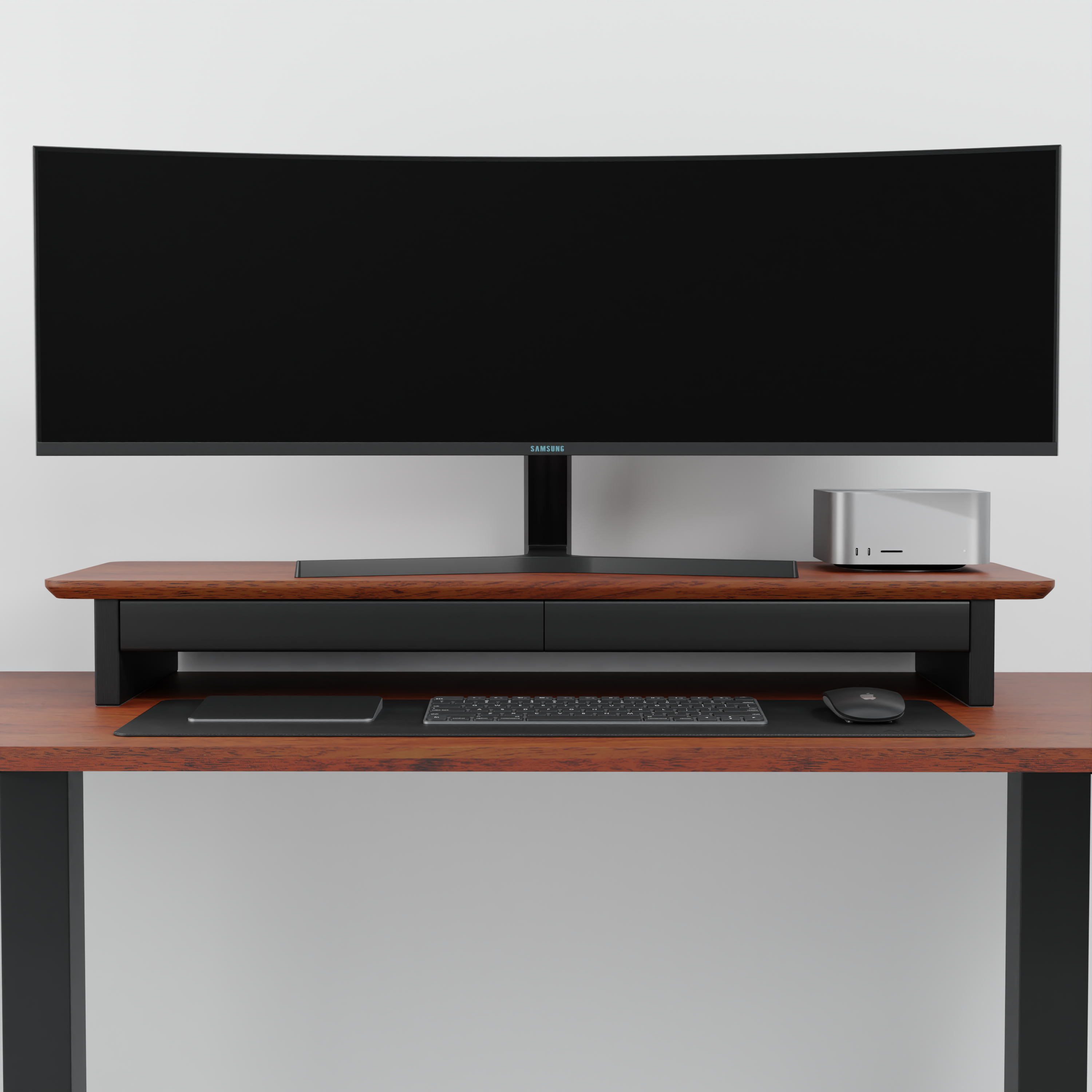 O StandPro 5 Max foi projetado para organizar e dar mais espaço em sua mesa, eleva seu monitor na altura correta, projetado para durar a vida inteira, produzido em madeira maciça Mogno de altíssima qualidade, resistência e durabilidade.